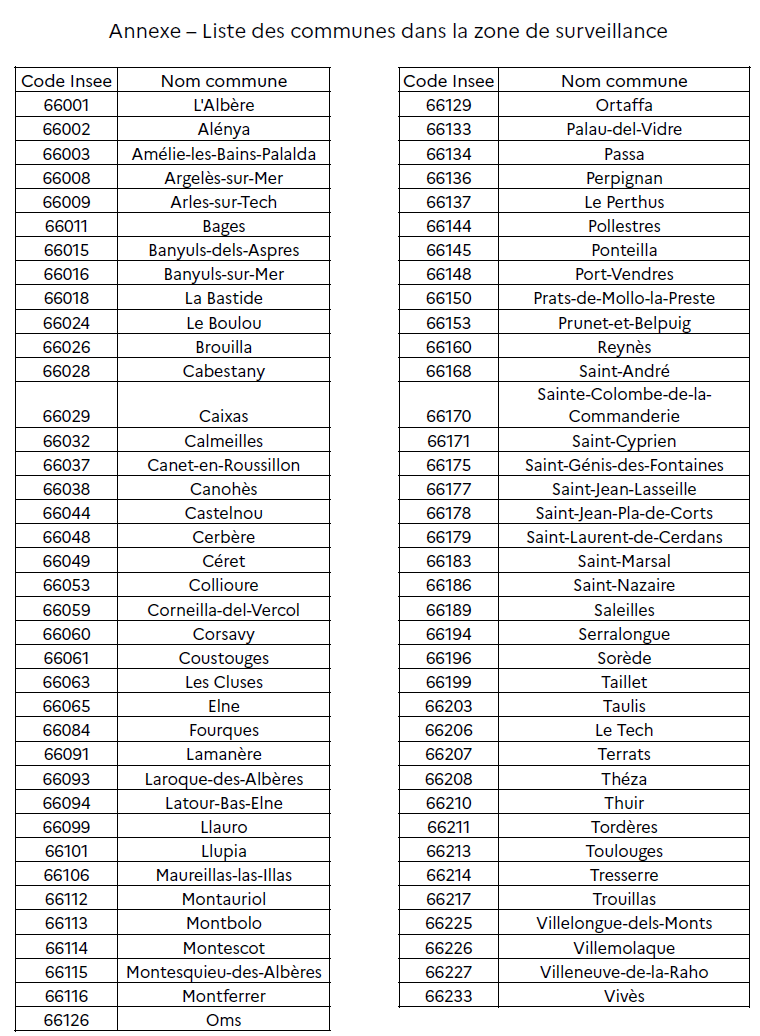 En cliquant, vous accéderez au communiqué de presse du ministère de l'agriculture et de la souveraineté alimentation et à l'arrêté préfectoral signé de samedi, avec en annexe la liste des communes concernées.