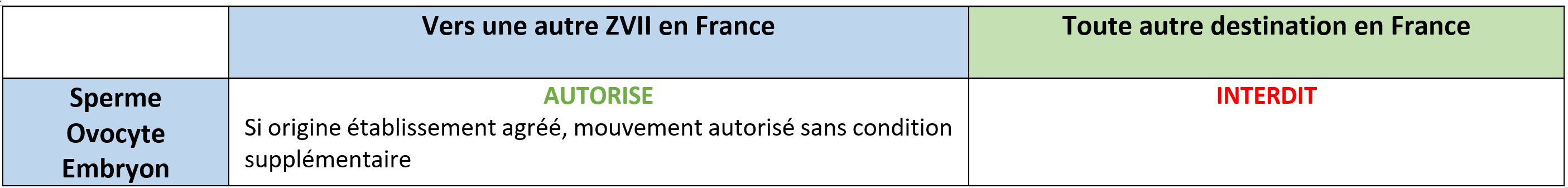 Vis-à-vis de la DNC, les mouvements des produits germinaux issus d’une zone vaccinale (ZVII) sont les suivants :