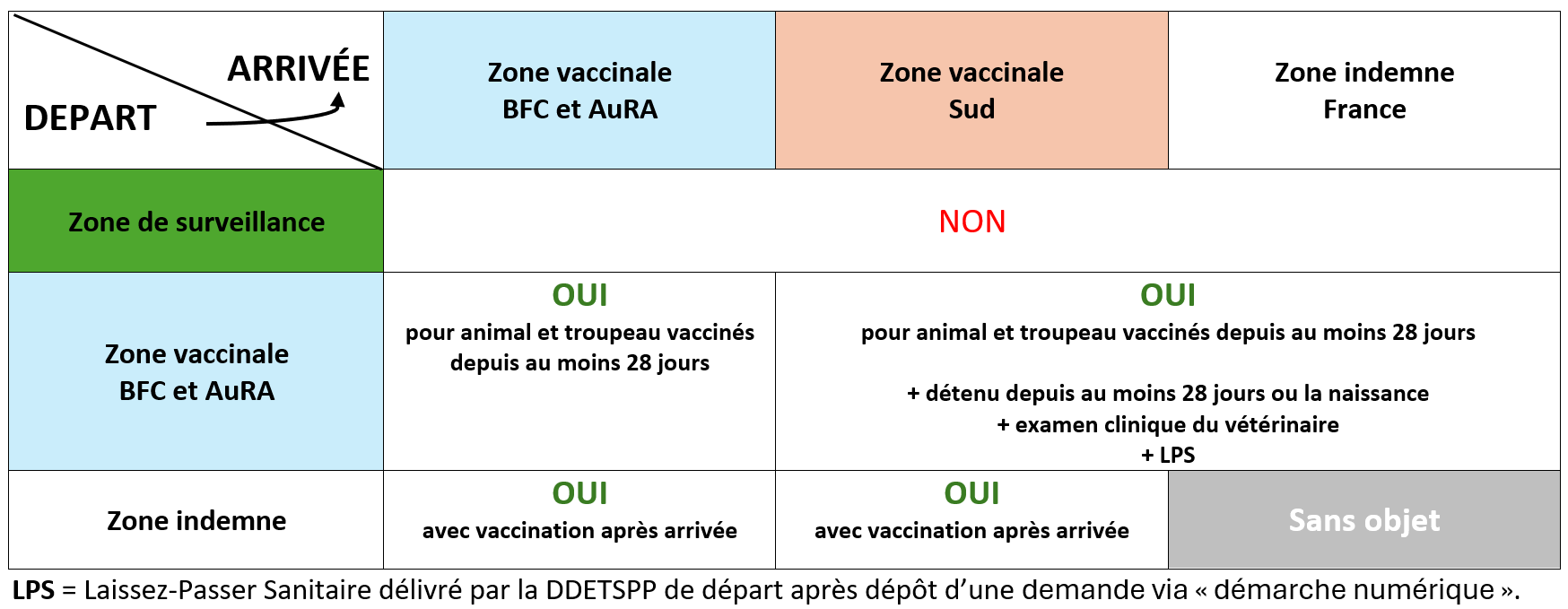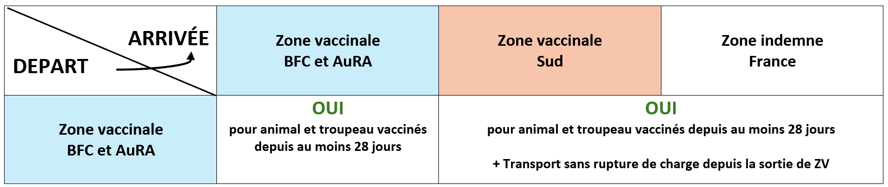Les communes concernées de Bourgogne - Franche-Comté et celles d’Auvergne - Rhône-Alpes forment une seule zone vaccinale (de type II).